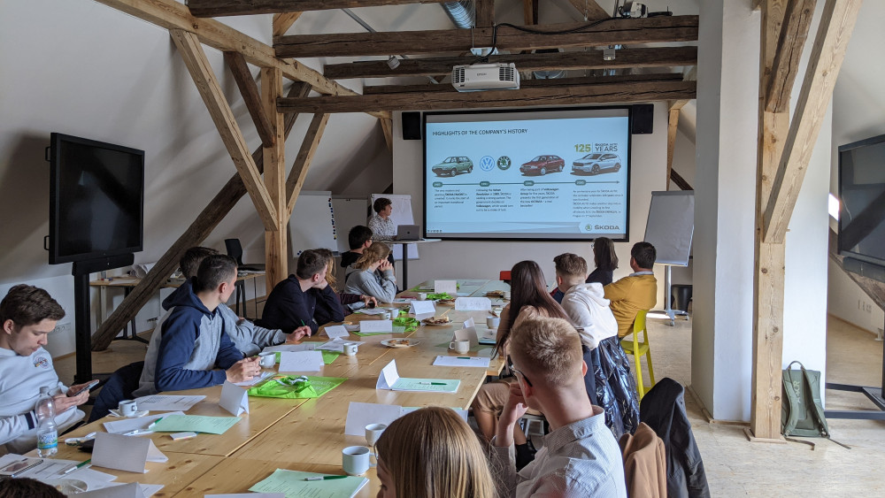 První část projektu probíhala na ŠKODA AUTO Vysoké škole, kde byly pro studenty připraveny nejenom odborné přednášky, ale také bohatý doprovodný program. V rámci odborných přednášek představila Ioana Giurgiu prezentaci na téma vyjednávací schopnosti, dále Ing. David Holman, Ph.D. připravil workshop zaměřený na problematiku štíhlých dodavatelských řetězců. Pavlína Zahradníčková Msc. představila možnosti uplatnění studentů ve společnosti ŠKODA AUTO v rámci talentového programu ŠKODA a prof. Dr.-Ing. Ingo Gestring seznámil studenty s tématem: Major Plyers in the Digital World – their Strengths, Weaknesses, Risks and Opportunities.