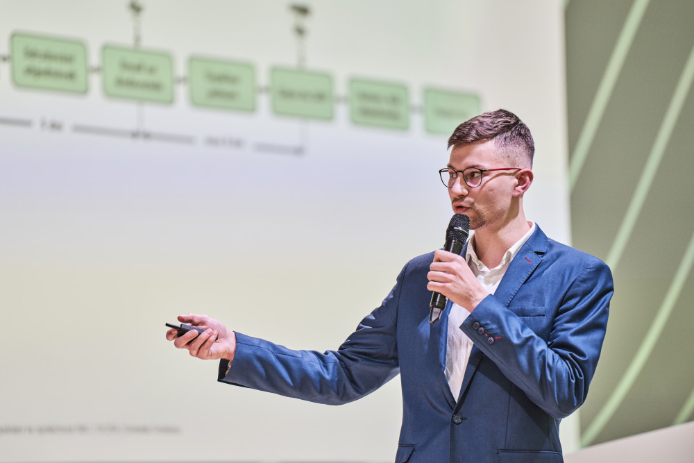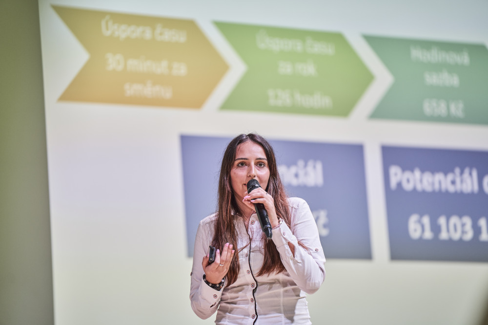 Magdalena Pražáková prezentovala výstupy ze své bakalářské práce na téma: "Analýza a optimalizace podmínek práce mistrů ve společnosti Škoda Auto a.s.," Lukáš Gerhardt představil práci na téma: "Faktory ovlivňující prodej vozidel Škoda Auto na britském trhu" a Dominik Smetana akcentoval moderní téma: "Chatbot pro automatizované jednání ve společnosti ABC".